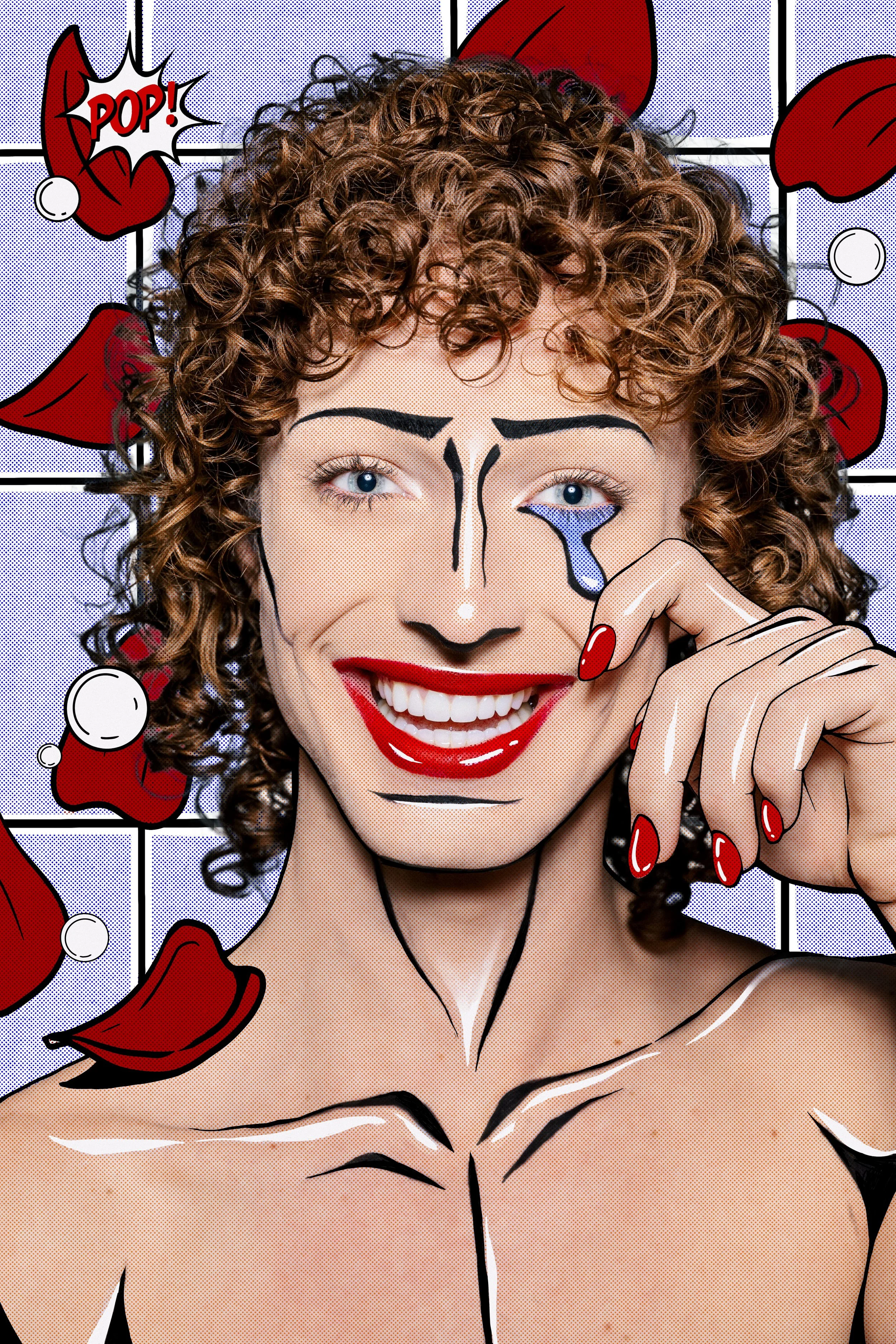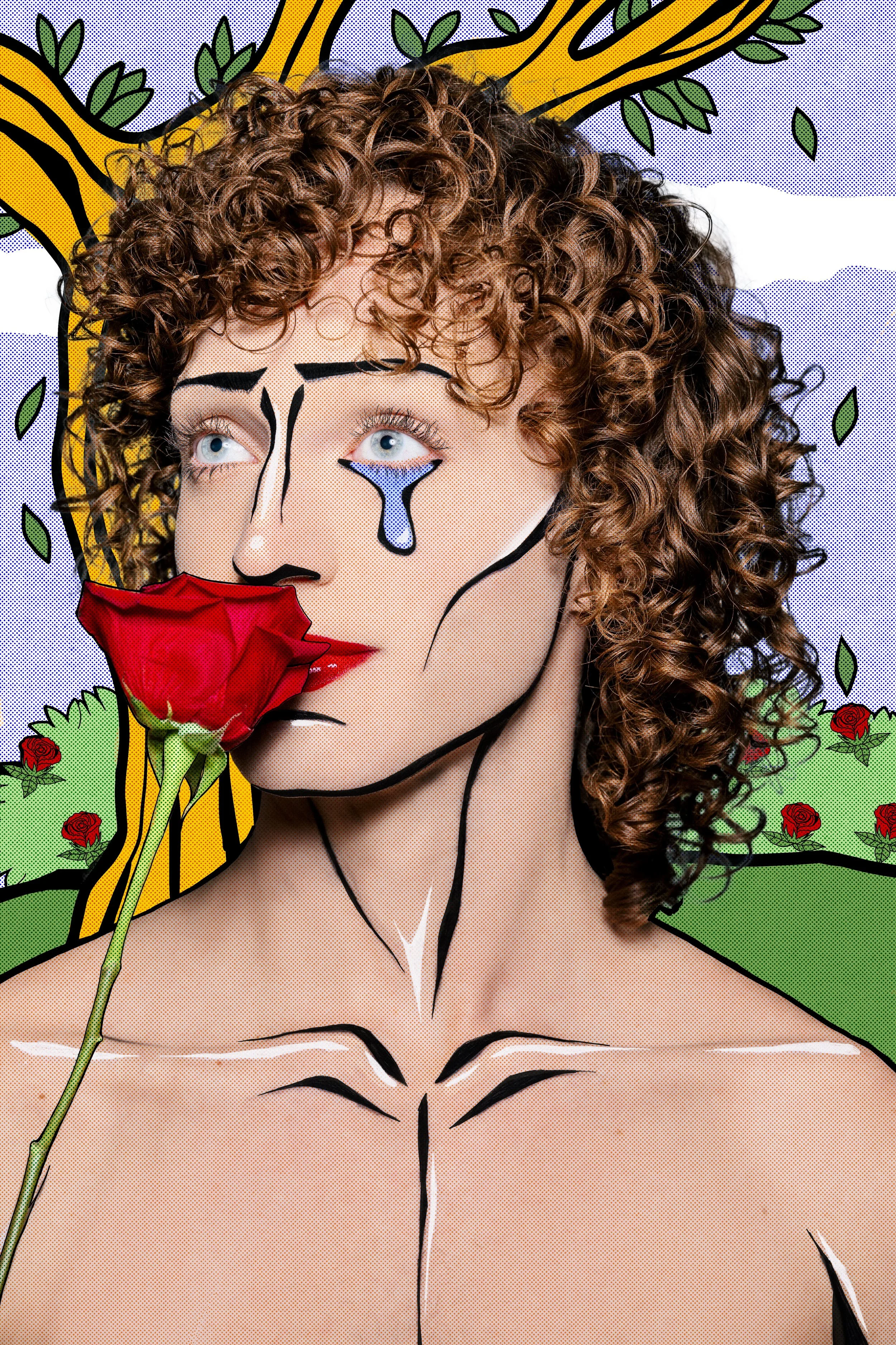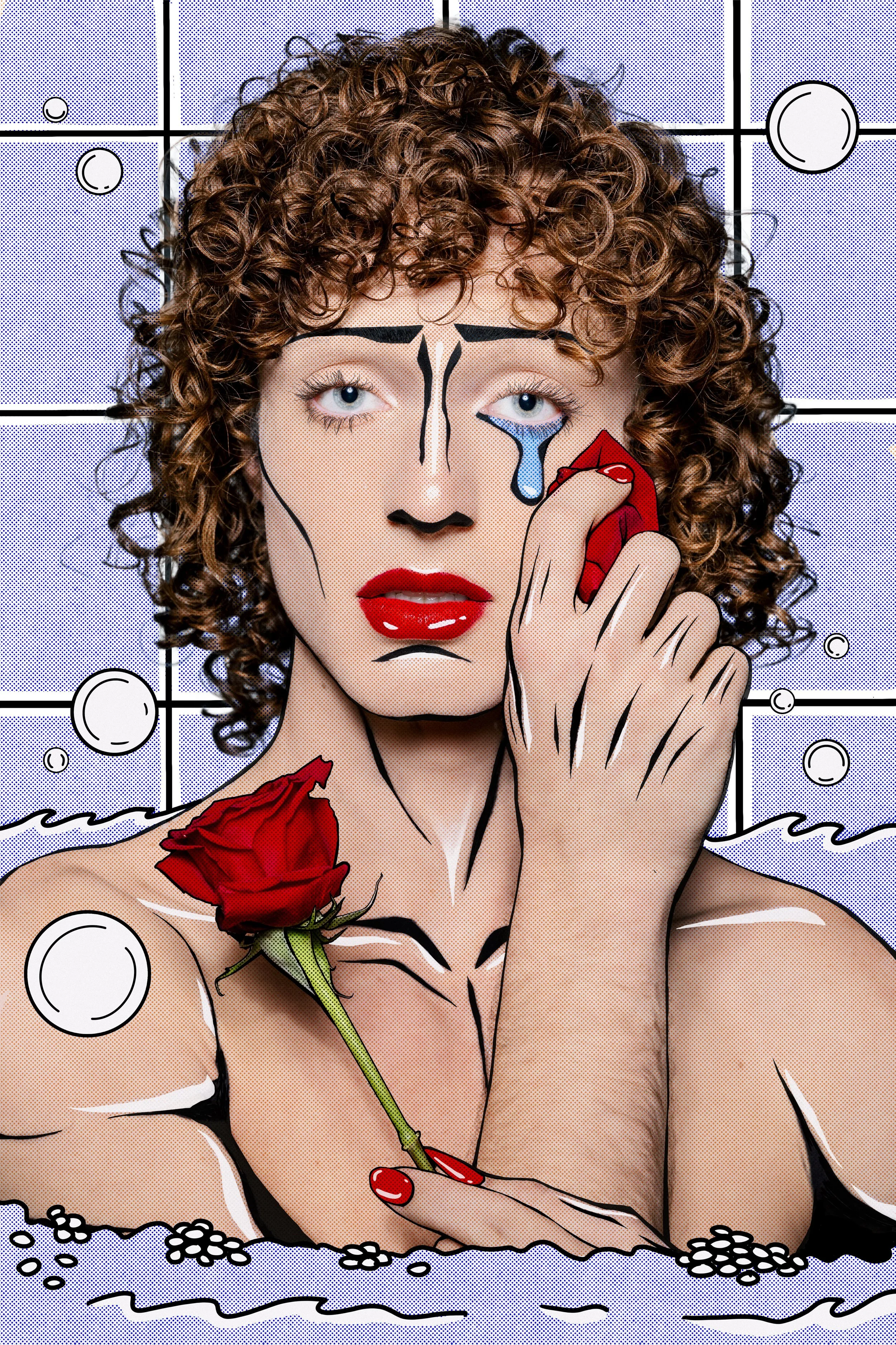 ‘He Loves Me, He Loves Me… POP!’ reimagines Lichtenstein’s distinctive style in a modern photographic context. This series tells a story of loss and heartbreak while satirizing how people communicate and date in the digital age. Each image captures a moment in time, frozen in a graphic novel-inspired aesthetic, featuring bold visual elements and vibrant colors that blend the old with the new. This series aims to create a dialogue between past and present, combining the timeless themes of love and loss with the bold aesthetic of pop art.